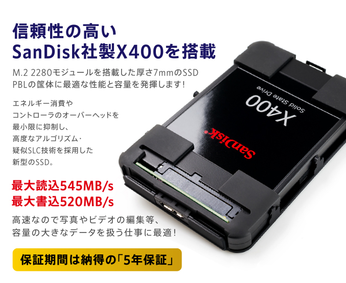 SanDisk社製SSDを使用、信頼性も抜群です。