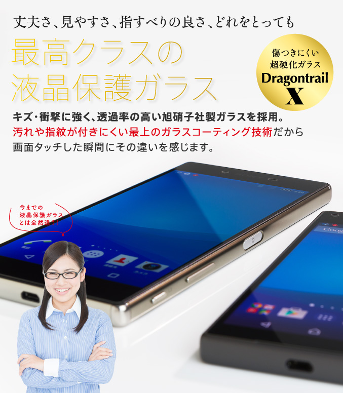 国産素材「Dragontrail X」を採用した液晶保護ガラスフィルム