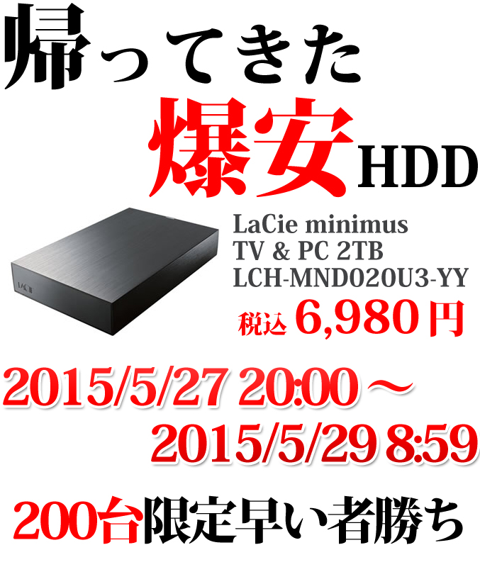LaCieの激安HDDを急遽200台確保いたしました!