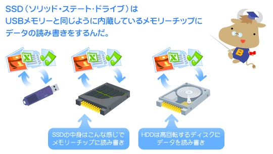 SDよろしくフラッシュメモリタイプのSSD、ソリッドステートドライブが主流だとか