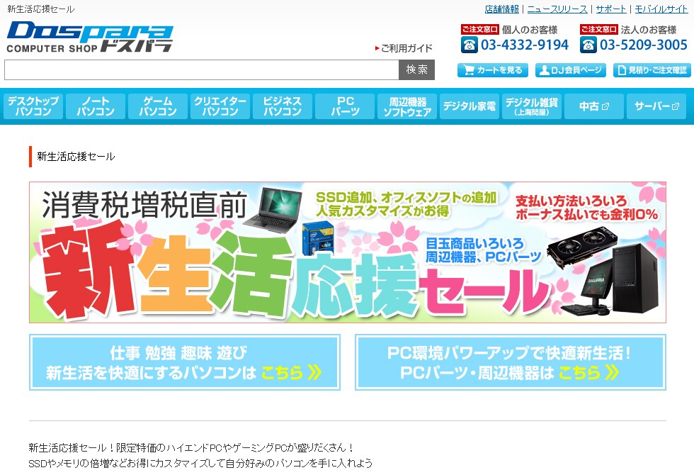 【ドスパラ】新生活応援セール
