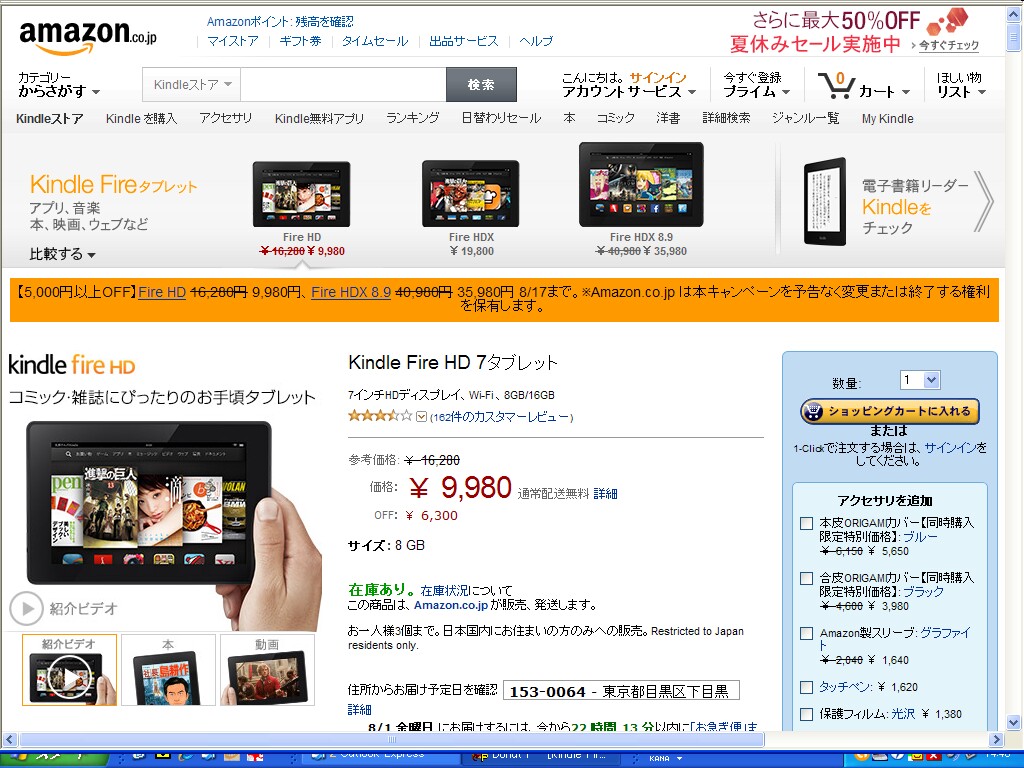 Kindle fire HD(7インチ)が、めちゃくちゃ安くなっています!